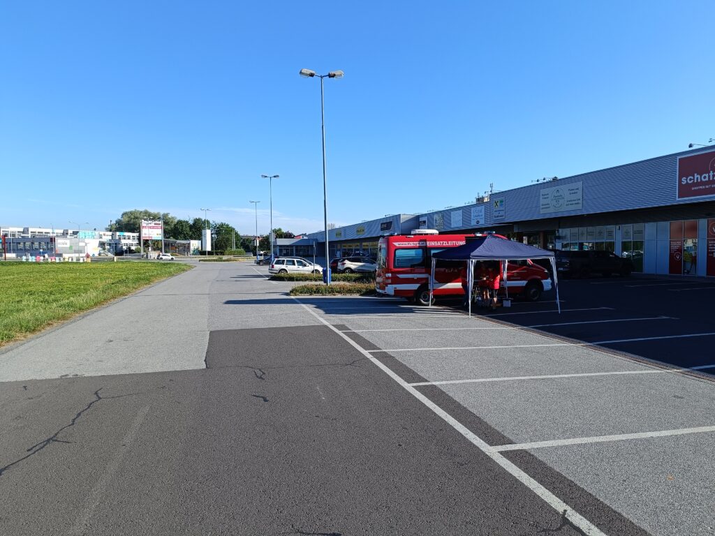 Anmeldung beim Einsatzleitfahrzeug LFKDO im Einkaufszentrum: